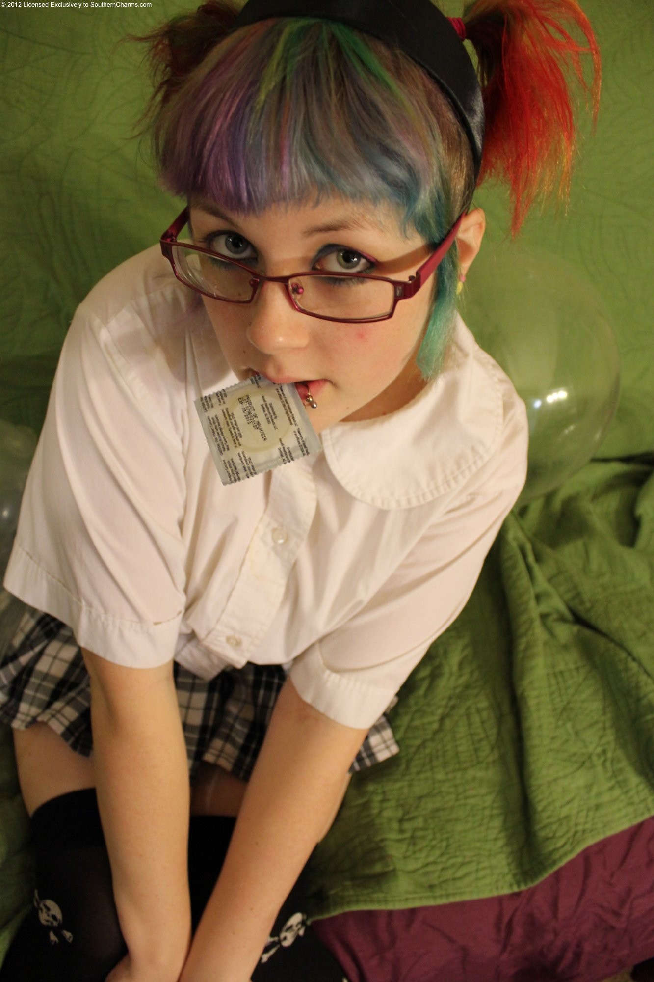 I'm a huge fan of blowing up and popping balloons and condoms. Something about condoms feels a little kinkier to me. In this update I'm dressed as a naughty school girl who is playing with condoms! I got really excited with the popping in this update. I popped them under my high heels, between my legs, and even pressed against my spread kitty! Hehe! I touched myself while blowing them up as well. It's so much fun!