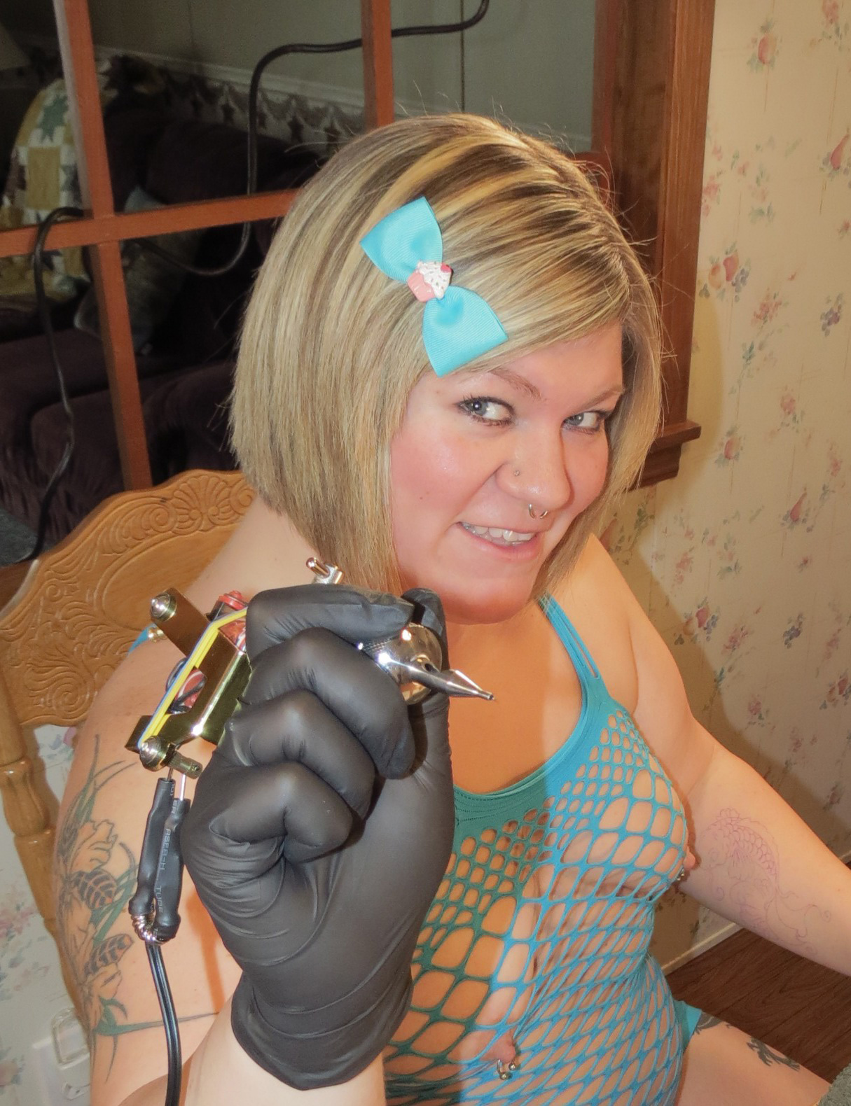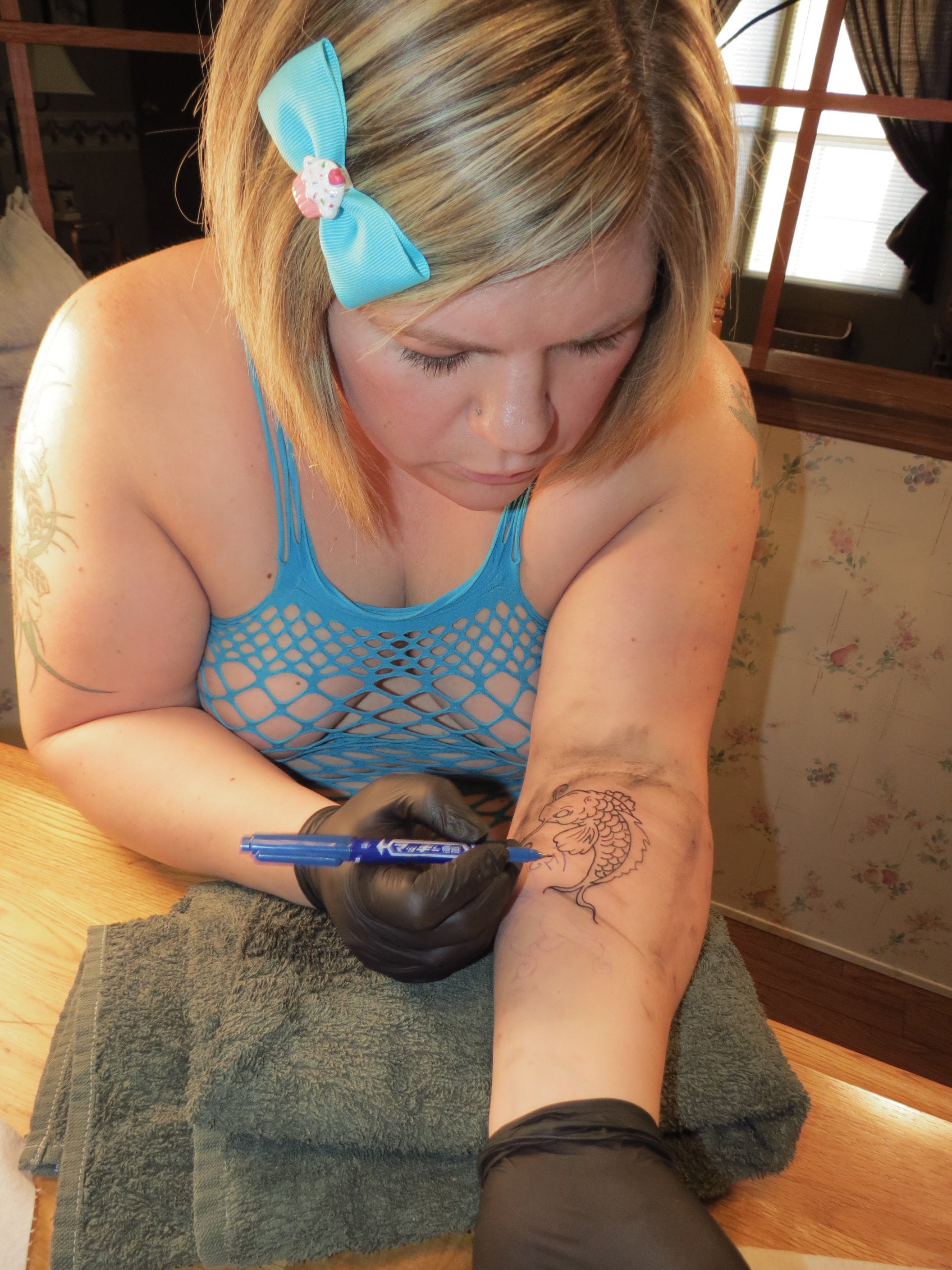 Nixx Loves To Ink!! In my free time, when I'm not working my full time job, I am a tattoo artist and also do body piercings. I love making customers happy by creating artwork for them. Every once in awhile I get the itch for some new ink myself, altho its a little challenging to give myself a tattoo I took some shots for you. This is part 1 where I outline my tattoo, so keep an eye out for Part 2 when I shade it in. Be sure to Join MY Site Today for the Really HOT pics xoxoxo!