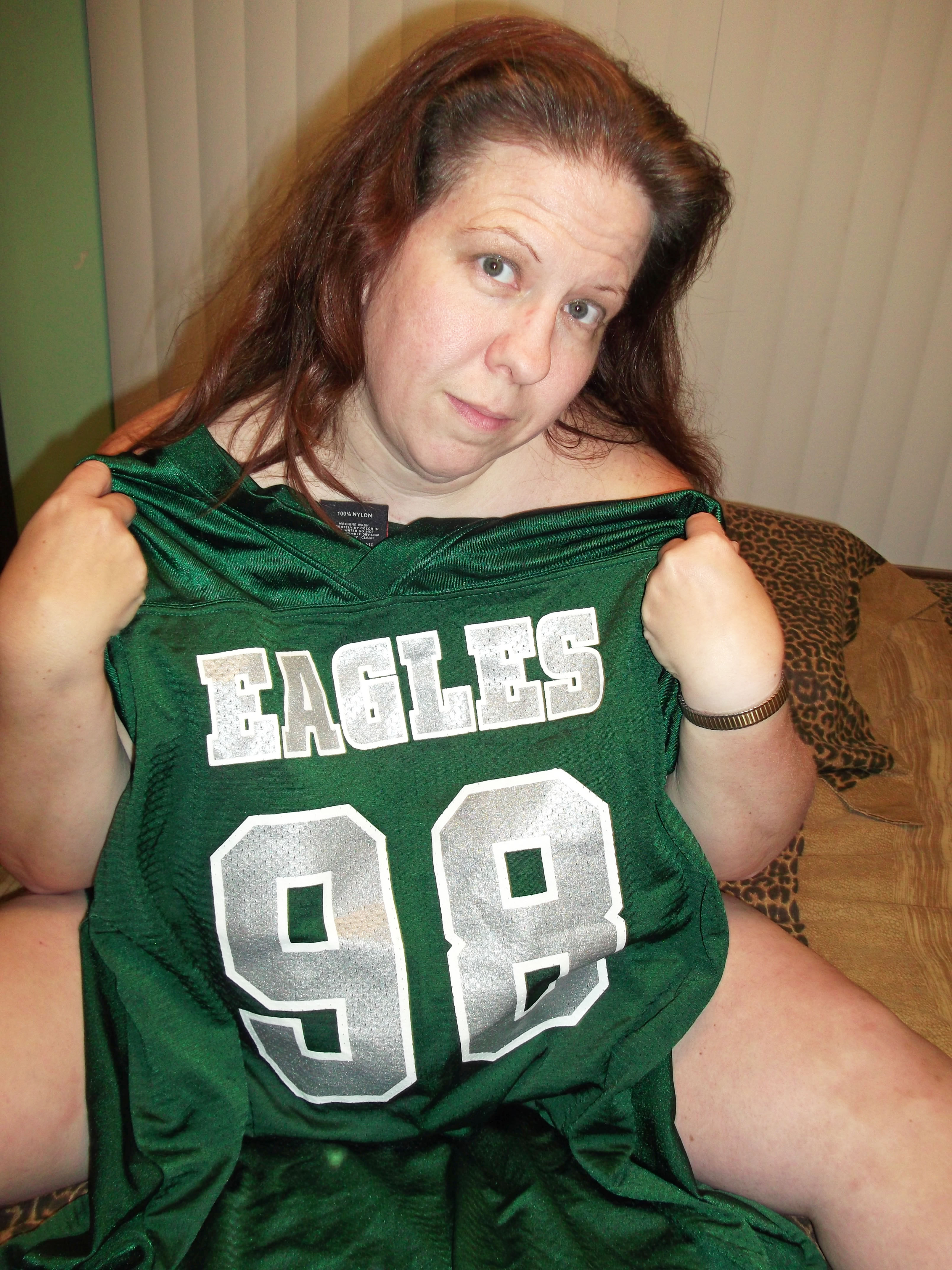 Inside my member's section you'll find photos that include me in a football jersey, my big 42DD tits, my curvy ass, my spread pussy, close ups, and my sock covered tootsies.