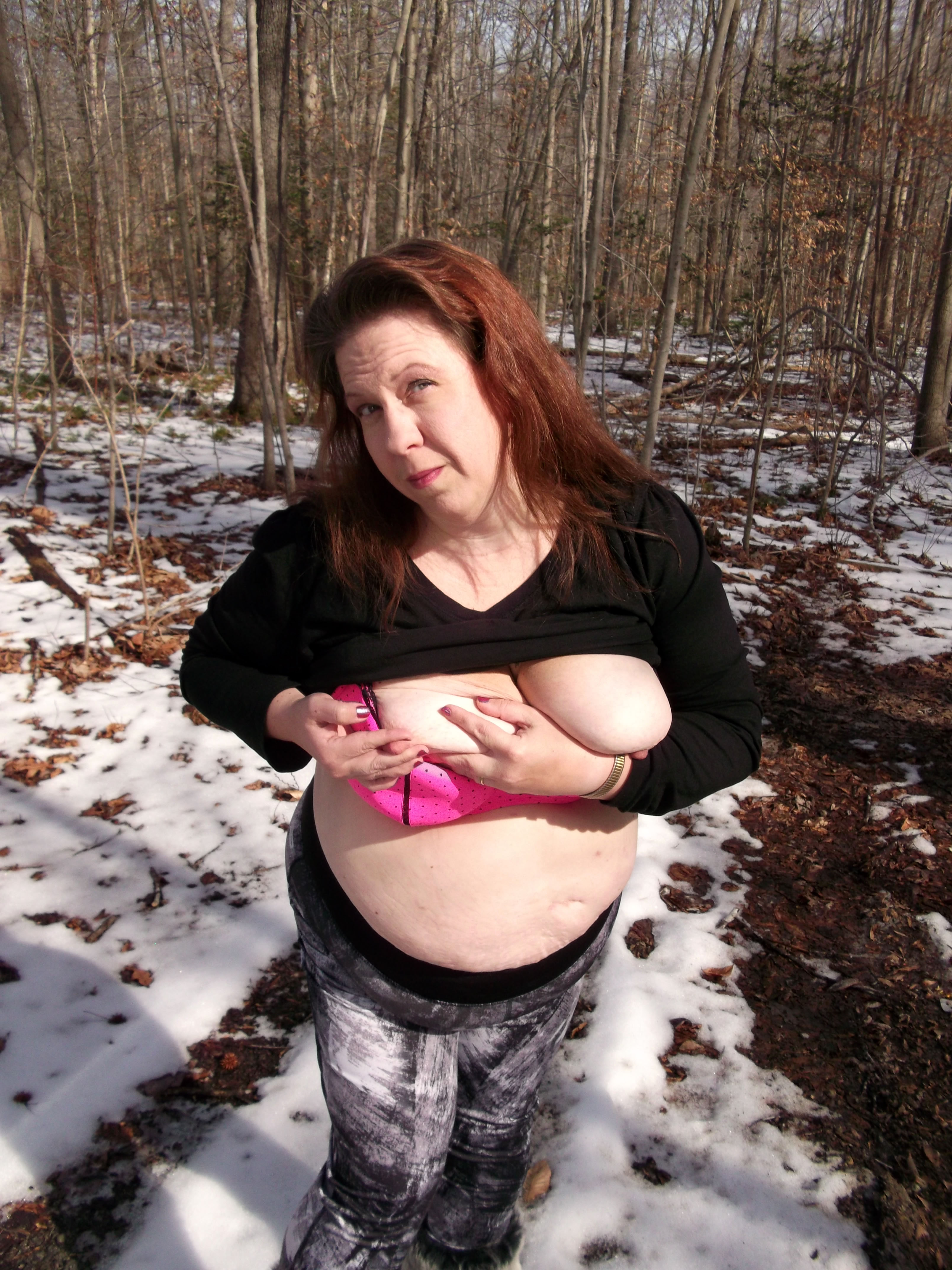 Inside my member's section, you'll find photos of me flashing and baring all my goodies including my big 42DD tits, my curvy ass, and my pink pussy while outside in the woods. Cum inside and help me set it on fire!