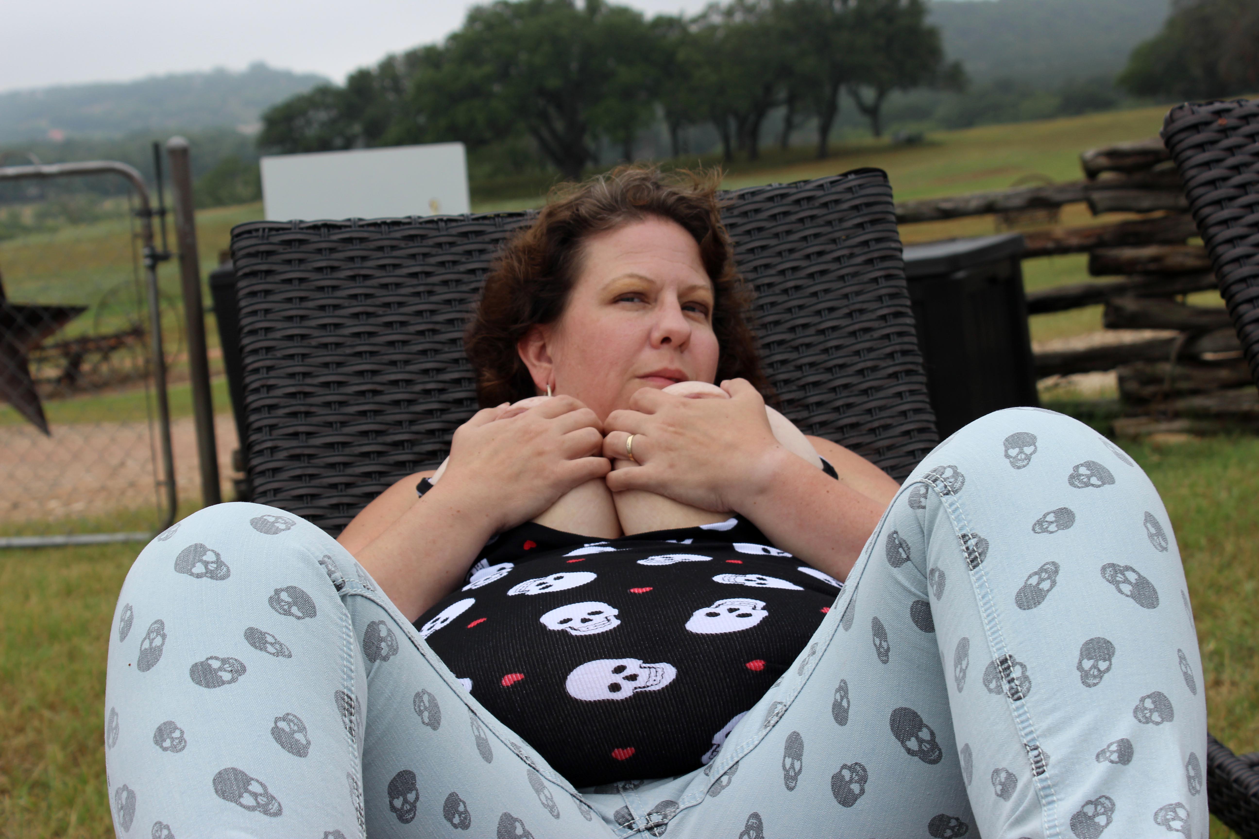 I was out relaxing by the pool the other morning and as time went by, it started to get really hot. So hot that I just had to strip out of my tank top, denim jeans ankle sock, and boots. I didn't think anyone was around but I bet you were in the shadows again watching me......you naughty boy *knowing smile on my face*