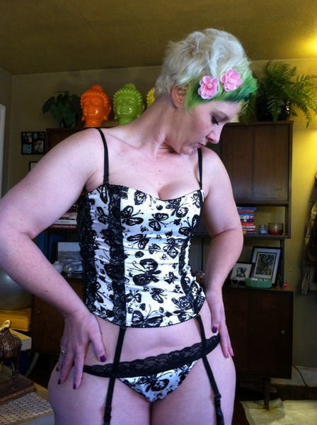 sizzleKITTY says, "We did 3 changes of lingerie for this set. papaBEAR couldn't make it past the black & white butterfly set and had to attack me. It is the first set with papaBEAR in it (well his dick anyway!)"