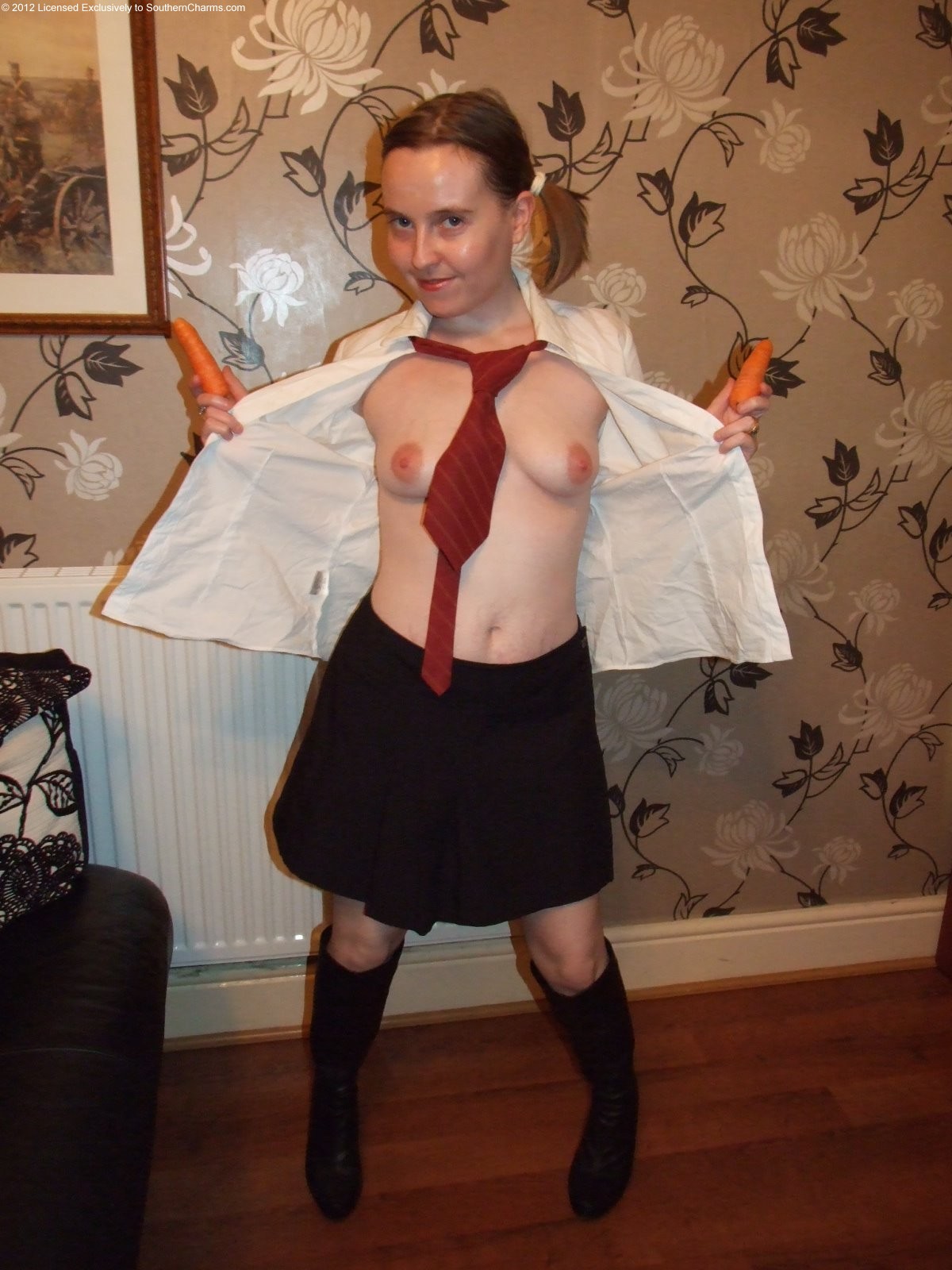 I have a new update on today with 2 carrots to play with wearing my school uniform, you can guess where the carrots go, I do love some of my 5 a day! This is part of a double update as I had way too many pics for a single update so part 2 will be Update 663.