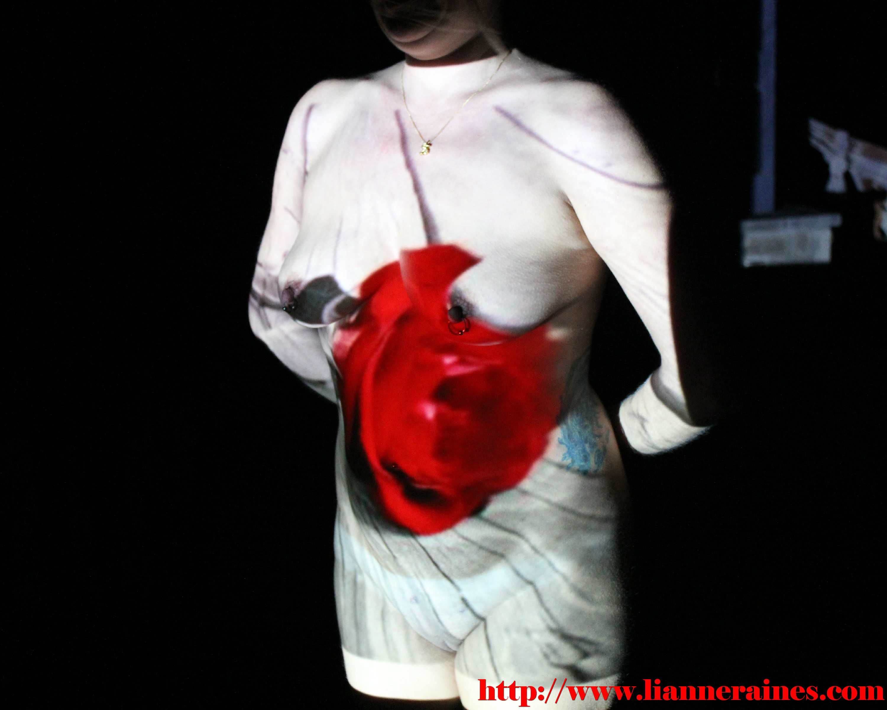 Well, this is a new style of update for me. This update is totally naked for me, I don't have to take off one stitch of clothing; no bra, no panties, no socks, just me painted in light. My friend has a projector and decided to use it to "paint me in light". He explained this was a difficult set to photograph since the light between each image was so different, but I think you get the idea of what is hiding under the light. I use a variety of images to get painted in light including one that says sex on it (which is now on my list of things to do, having sex while be being painted in light)