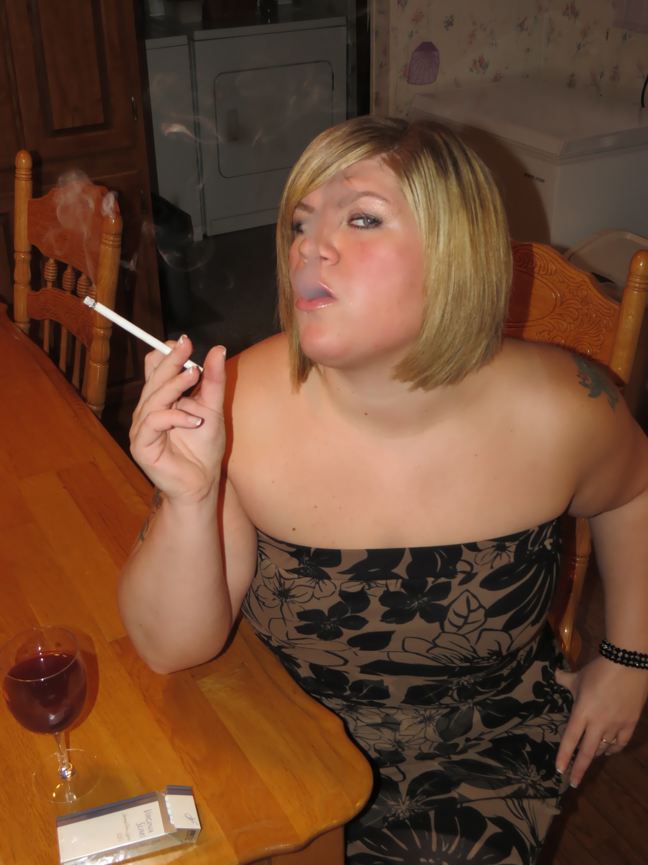 Wine N' Smoke!! Watch me strip out of my dress with my Wine & Virginia Slim 120's! Plenty of Booty, Pantyhose and Lust!! Cum Join Me Today!! xoxox
