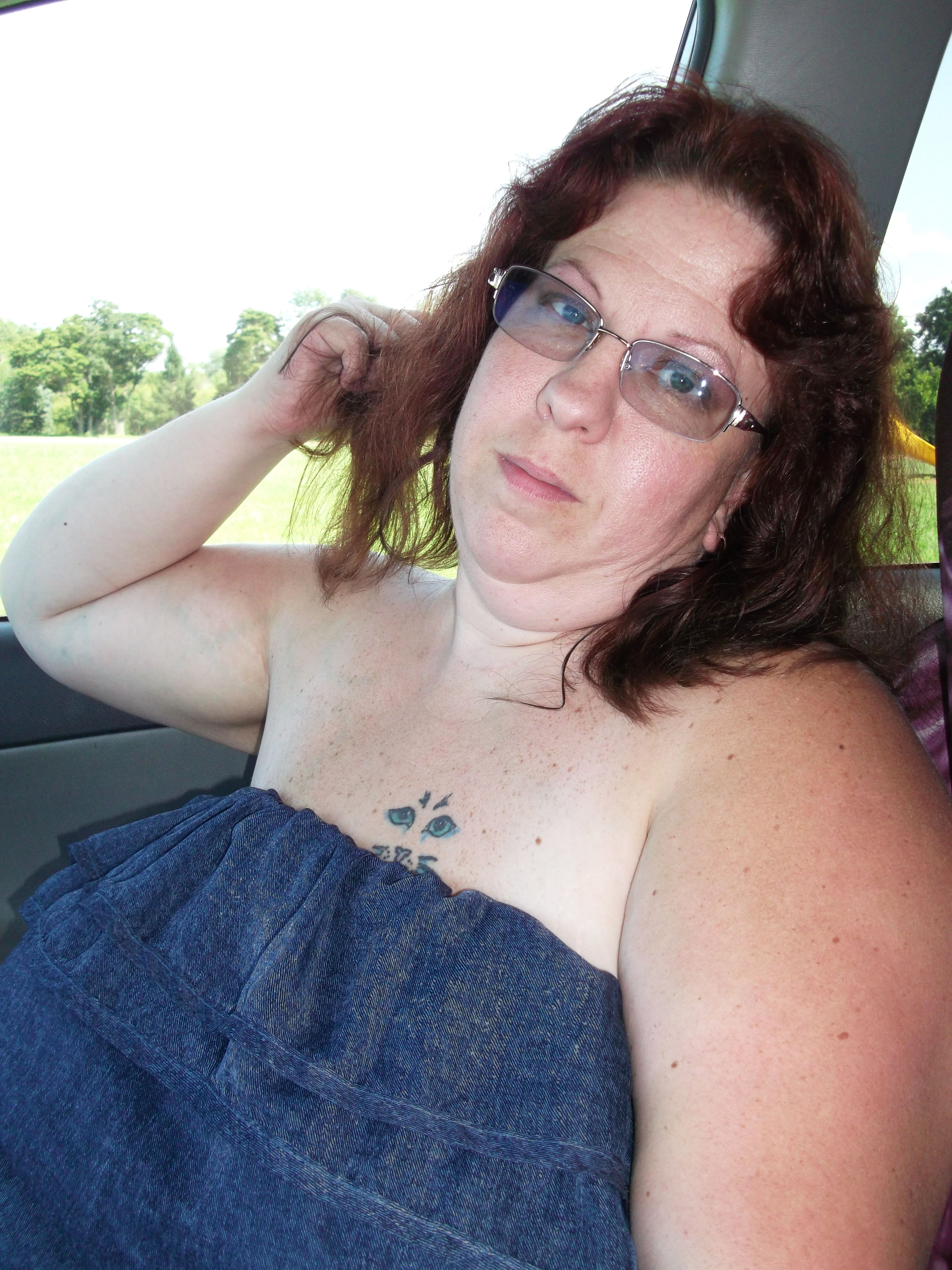 Out and about in my denim colored dress. So while I'm running errands I decided to do some more flashing for you. Have to love the strapless dresses, they sure do make for some easy access to my big titties! I even give you a few sneak peeks to my pussy below. Be sure to stick around for my next update when I stop somewhere else and give you a lot more peeks at my pretty pussy on the same day.