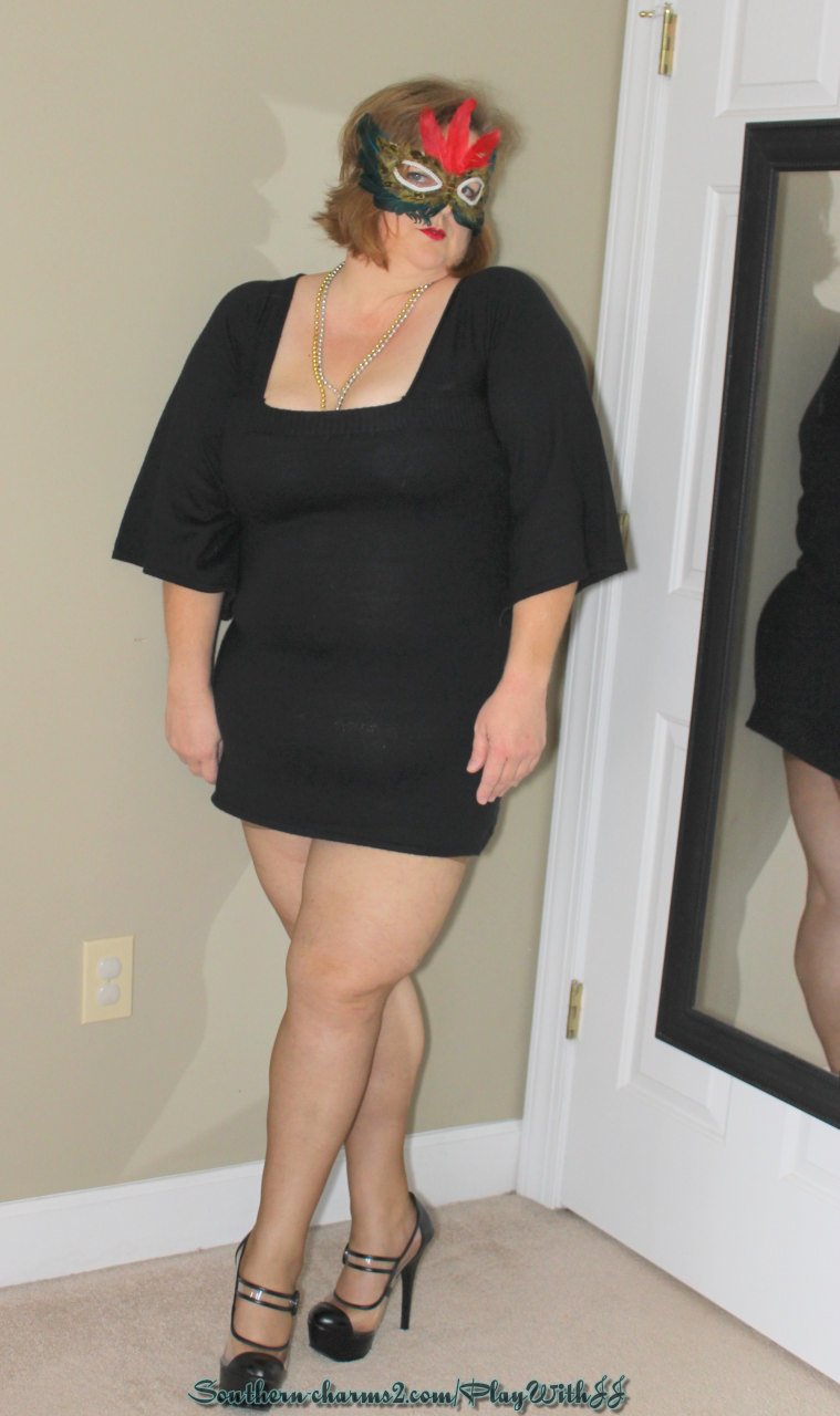 Let the Good Times Roll-Tight black dress, pantyhose heels