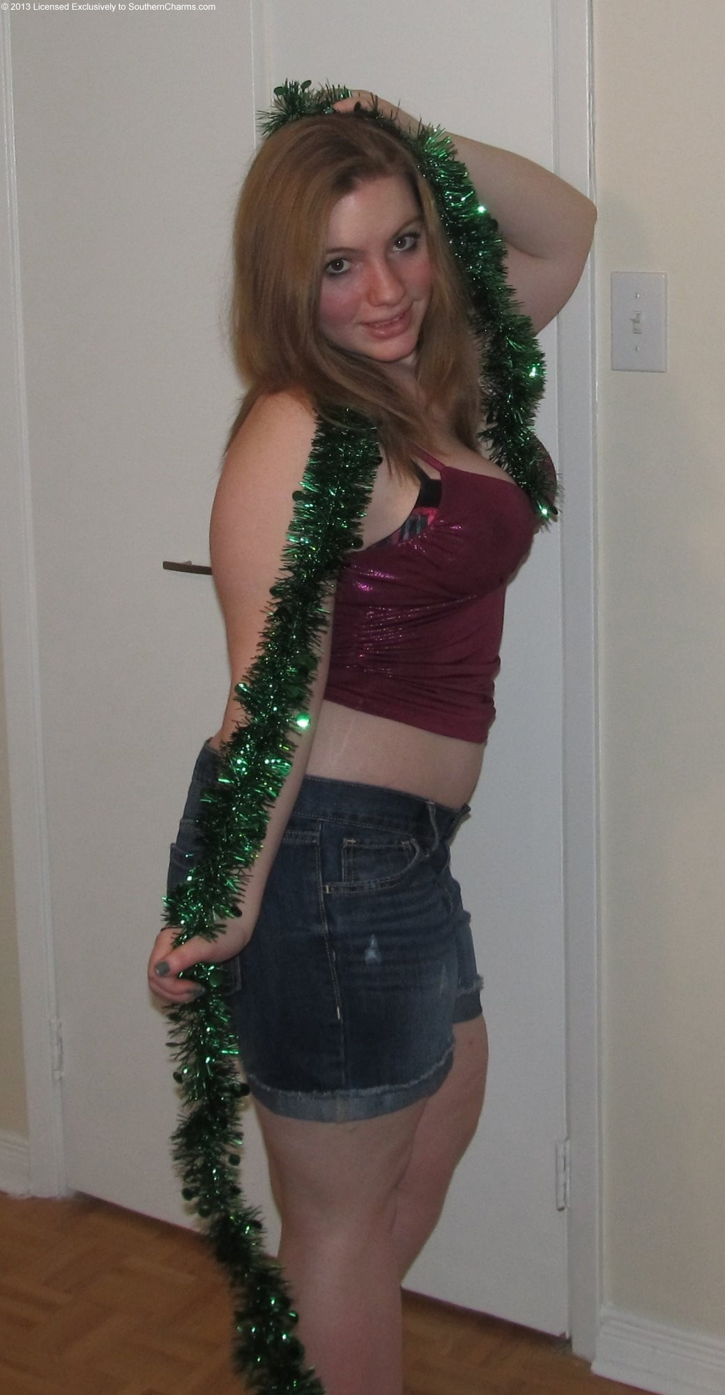 Texas Elegance - Topless in denim shorts