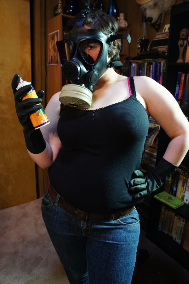 Love the idea of you cleaning wearing it too. Gloves, apron, polish and gasmask, what else do you need to clean the house?